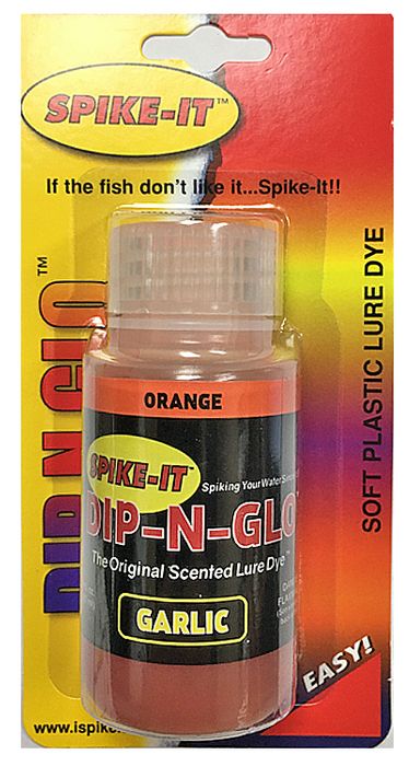 - 2 OZ SPIKE-IT DIP-N-GLO GARLIC SCENTED LURE DYE ORANGE