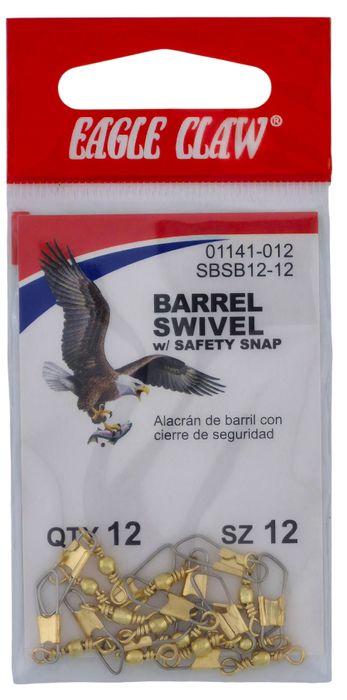 - #12 BRASS BARREL SWIVEL W/SAFETY SNAP 12PK 12PK/BX