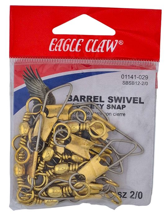- 2/0 BRASS BARREL SWIVEL W/SAFETY SNAP 12PK 12PK/BX
