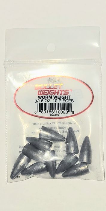 - 3/16 OZ BULLET WORM WEIGHTS 10PK 12PK/BX