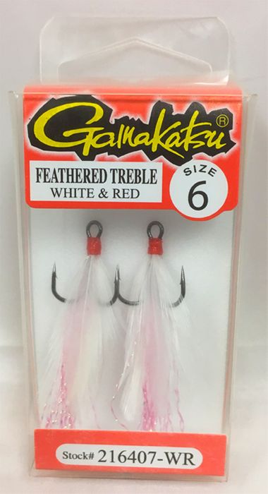 #6 RED TREBLE FEATHER WHT/RED 2PK