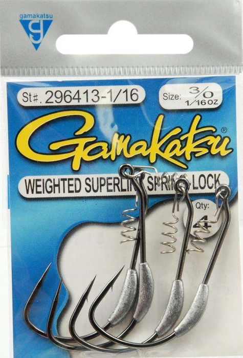 - 3/0 SUPERLINE SPRING-LOCK 1/16 OZ WEIGHTED HOOK 4PK