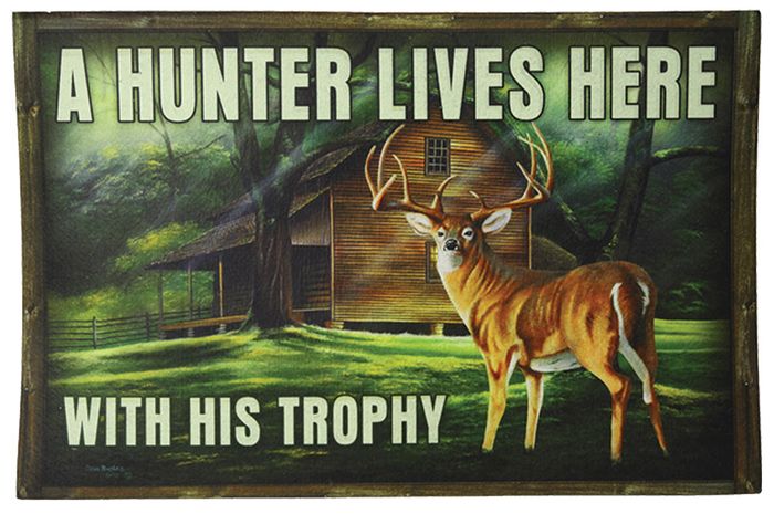 - **WSL** 26"X17" DOORMAT A HUNTER LIVES HERE W/ HIS TROPHY