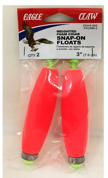 3" WEIGHTED RED FOAM CIGAR SNAP-ON FLOATS 2PK