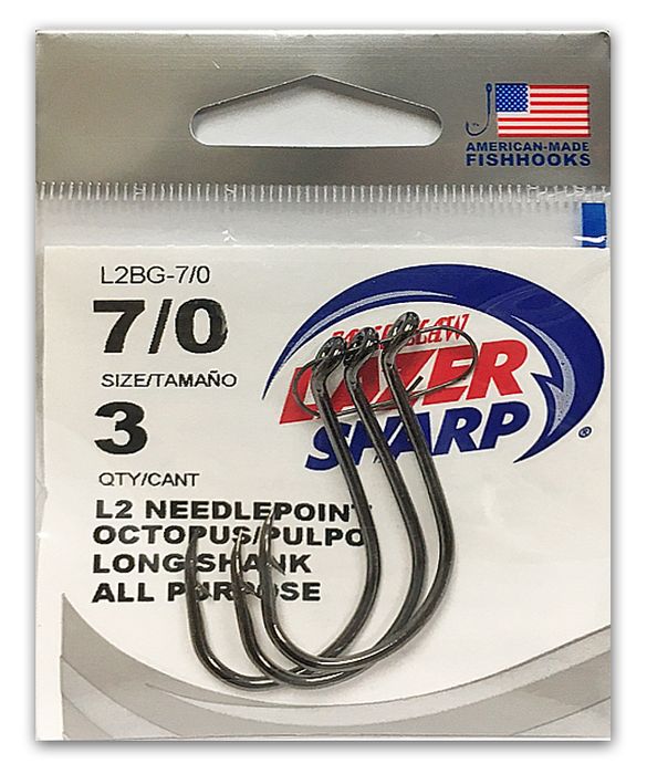 - 7/0 LAZER L2 NEEDLEPOINT OCTOPUS HOOK BLACK 3PK