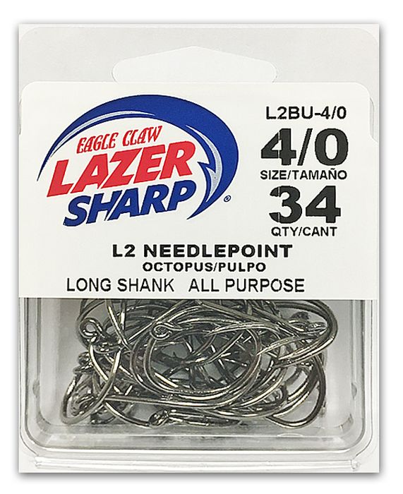 - 4/0 LAZER L2 NEEDLEPOINT OCTOPUS HOOK BLACK 34PK