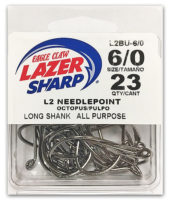 - 6/0 LAZER L2 NEEDLEPOINT OCTOPUS HOOK BLACK 23PK