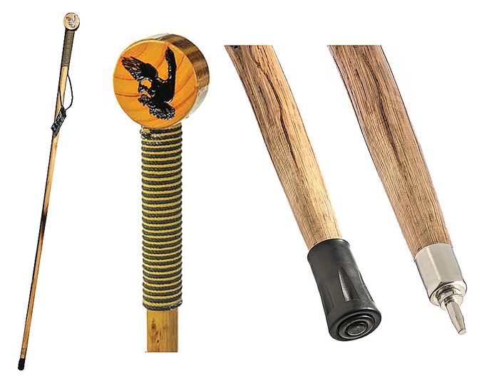 - 55" WOODEN HIKING STICK W/ ROPE WRAPPED HANDLE & ROUND TOP PIECE