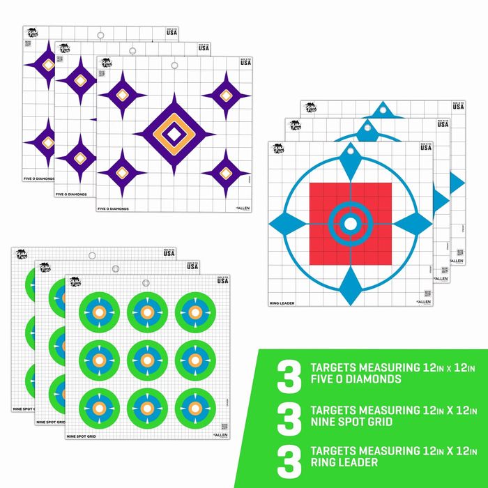 - 12"X12" EZ AIM FUN DIALING IN ASSORTED PAPER TARGETS 9PK
