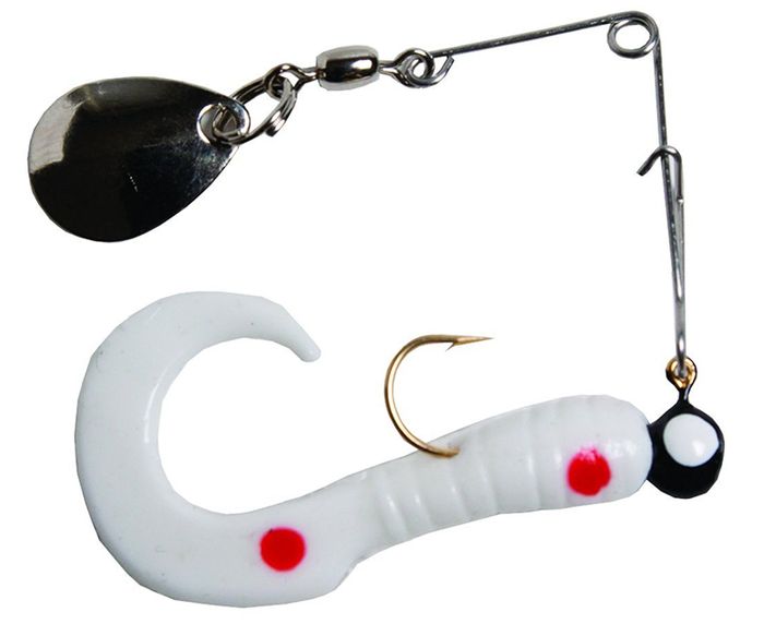 - 1/4 OZ CURLS-SPIN WHITE/RED DOT 4" 1PK 12PK/CD