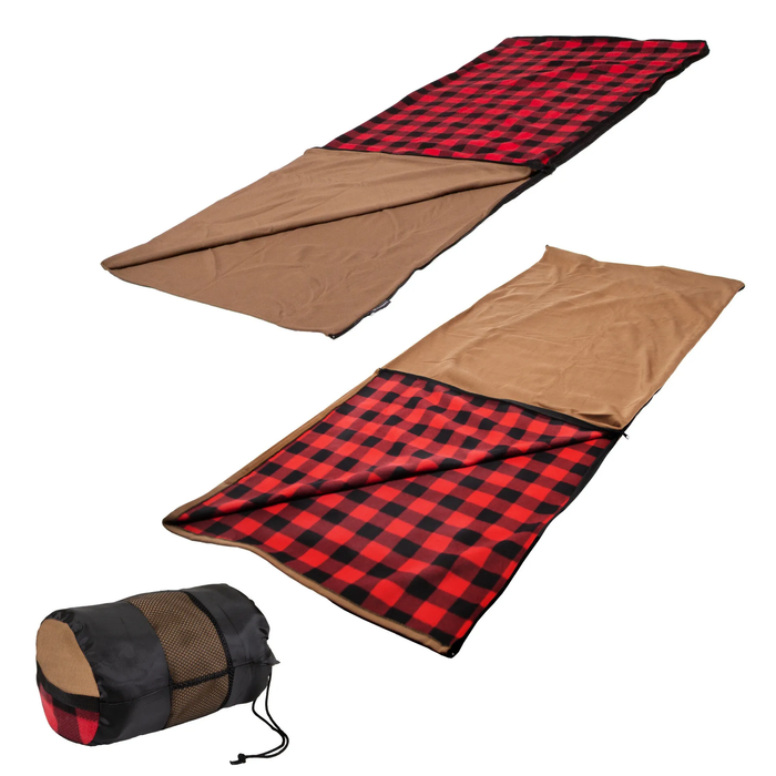 REVERSIBLE BONDED FLEECE SLEEPING BG-TAN/RED PLAID-32X75