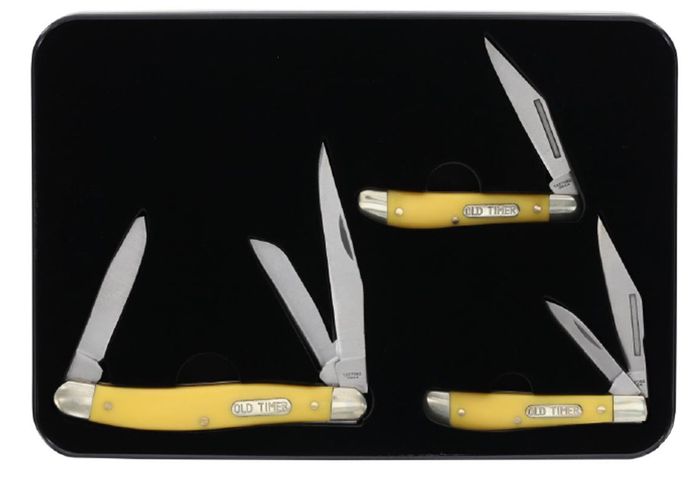 - **WSL** OLD TIMER 3 PC YELLOW FOLDING KNIFE TIN SET
