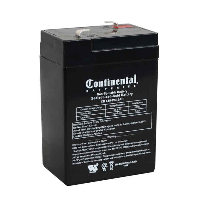 6 VT 4.5AH SEALED LEAD ACID BATTERY - CONTINENTAL BATTERY