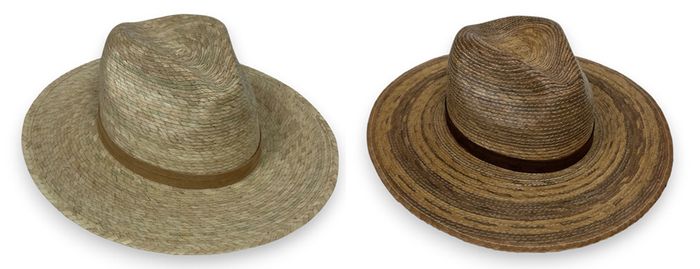 - MEXICAN PALM LEAF FLAT BRIM HAT W/ LEATHER TRIM