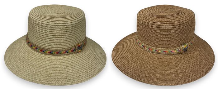 - LADIES HAT W/ NATURAL BRAID TRIM - 2 COLORS