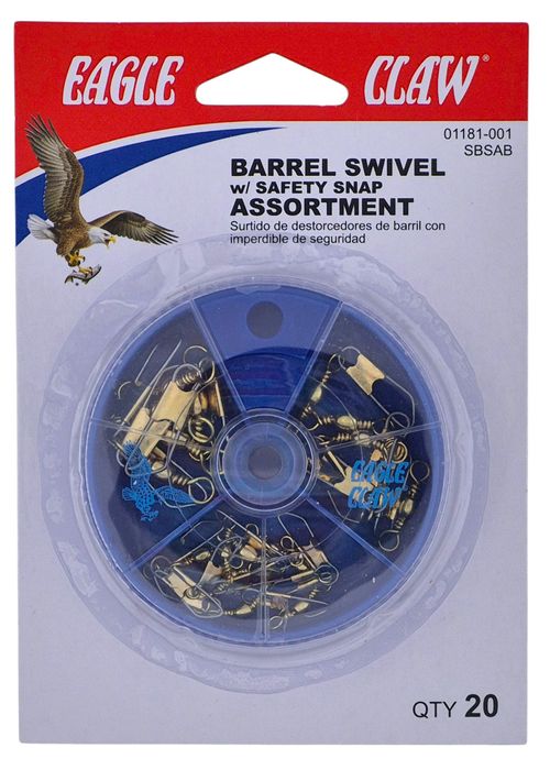 20 PC BARREL SWIVEL W/SAFETY SNAP ASSORTED
